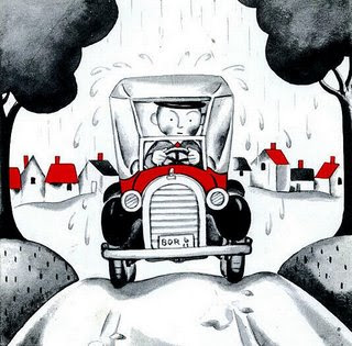 The truck driver in this is modeled on my mother, and the dog is my dog, Lily.